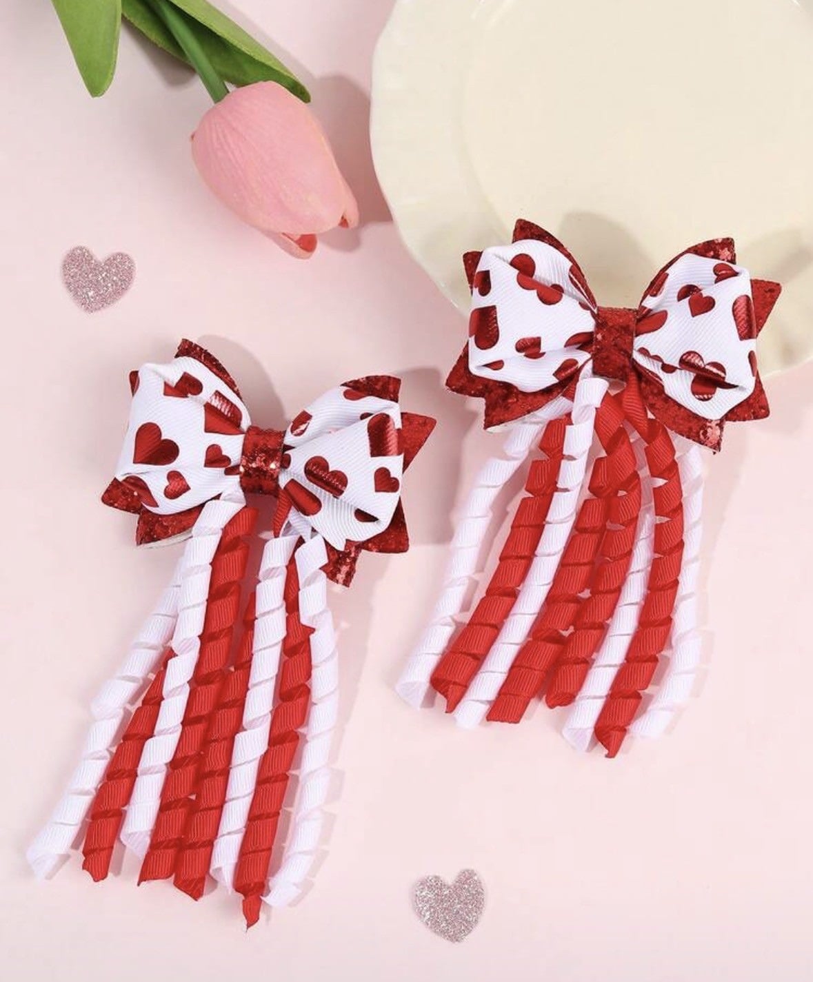 PINK VALENTINE CORKER HAIR BOWS