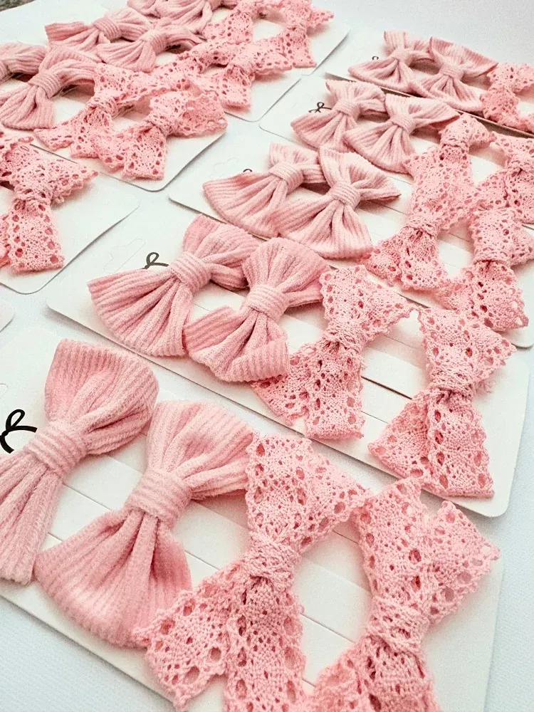 PINK VELVET LACE HAIR BOWS SET